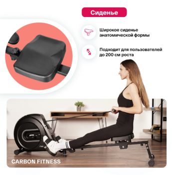 Гребной тренажер CARBON FITNESS RW70 — это идеальный выбор для домашних тренировок, который подходит как для новичков, так и для опытных любителей фитнеса. Он предлагает функциональные характеристики, обеспечивающие высокую эффективность занятий и комфорт во время тренировок. Компактный и стильный, этот тренажер станет отличным дополнением к вашему домашнему фитнес-уголку. Тренажер оснащен LCD-консолью с возможностью отображения основных показателей: времени, дистанции, калорий и счетчика гребков. Поддержка русского и английского языков интерфейса делает его использование простым и понятным. CARBON FITNESS RW70 предлагает ручной режим тренировки, что позволяет легко настраивать занятия под свои индивидуальные потребности и уровень подготовки. Гребной тренажер имеет магнитную систему нагружения optiSTEP™ с 4 уровнями нагрузки, регулируя интенсивность тренировок в зависимости от ваших целей. Маховик BioFusion весом 21 кг обеспечивает плавное и стабильное движение, а анатомическое сиденье и антискользящие педали с регулируемыми ремешками гарантируют комфорт и безопасность во время занятий. Максимальный вес пользователя составляет 120 кг, что делает тренажер универсальным для большинства пользователей. Гребной тренажер CARBON FITNESS RW70 — это не просто спортивное оборудование, а ваш надежный партнер на пути к здоровому образу жизни. Начните свои тренировки уже сегодня и достигайте новых высот в фитнесе! Ключевые преимущества CARBON FITNESS RW70: • магнитная система нагружения optiSTEP™ с 4 уровнями нагрузки; • маховик BioFusion весом 21 кг для плавности движений; • компактная функция складывания для удобного хранения; • простая и понятная LCD-консоль с базовыми показателями; • 12-месячная гарантия на надежность и качество.