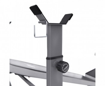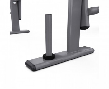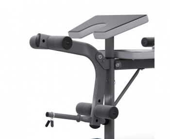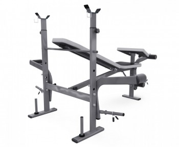 Максимальная нагрузка на стойки для штанги равна 100 кг, а расстояние между стойками 76 см. Скамья также оснащена ручным рычагом с максимальной нагрузкой до 40 кг и нагрузкой на рычаг для валиков до 80 кг. Весовые пластины не входят в комплект, но их можно приобрести отдельно.